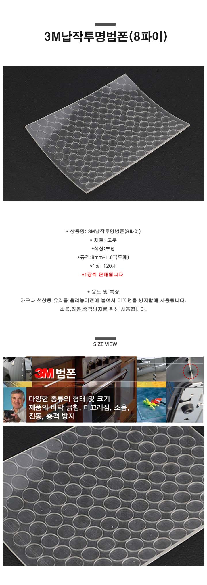 3M납작투명범폰(8파이)(가구철물/쿠션/유리미끄럼방지/소음방지패드/층격흡수패)