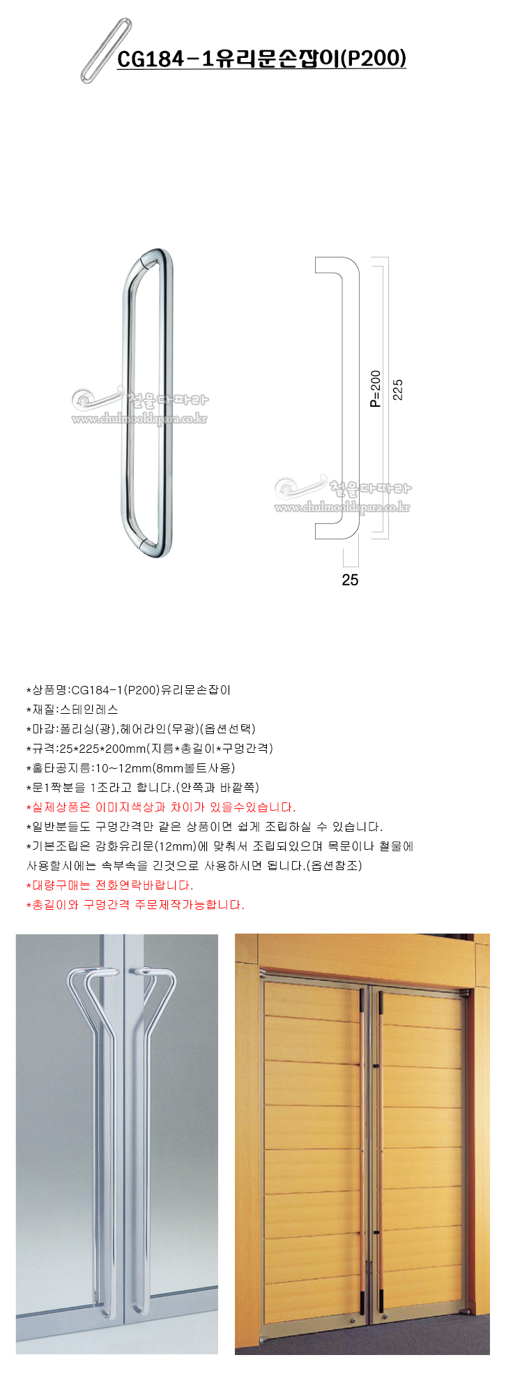> CG184-1유리문손잡이(P200)(강화유리문손잡이/현관유리문손잡이)