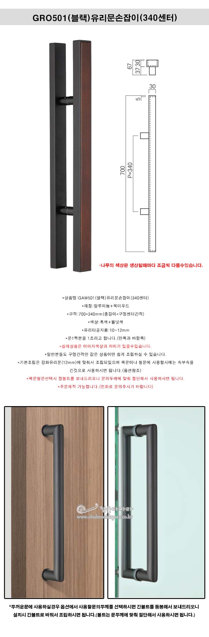 GAW501(블랙)유리문손잡이(340센터)(강화유리손잡이/강화도어손잡이/현관손잡이/현관유리문손잡이/강화도어핸들/유리손잡이/유리문핸들)