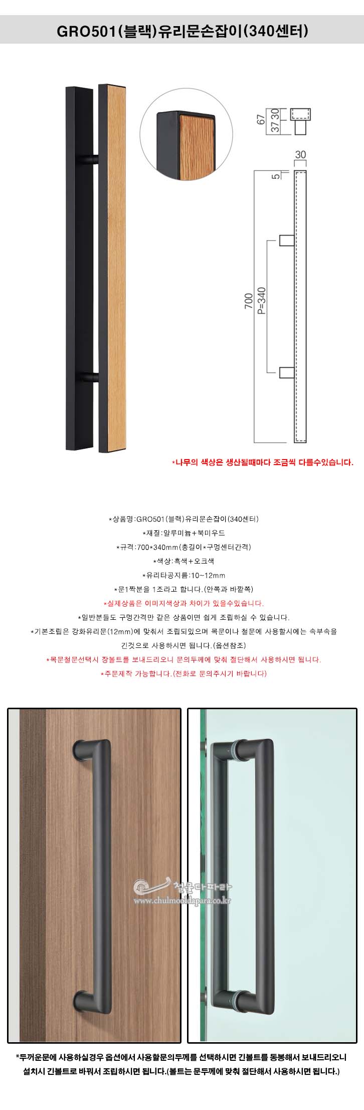 GRO501(블랙)유리문손잡이(340센터)(강화유리손잡이/강화도어손잡이/현관손잡이/현관유리문손잡이/강화도어핸들/유리손잡이/유리문핸들)