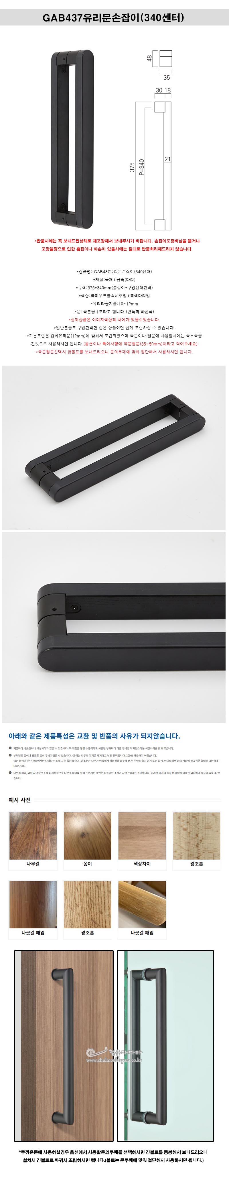 > GAB437유리문손잡이(340센터) 현관유리문손잡이 강화유리문손잡이 유리문핸들 강화도어핸들
