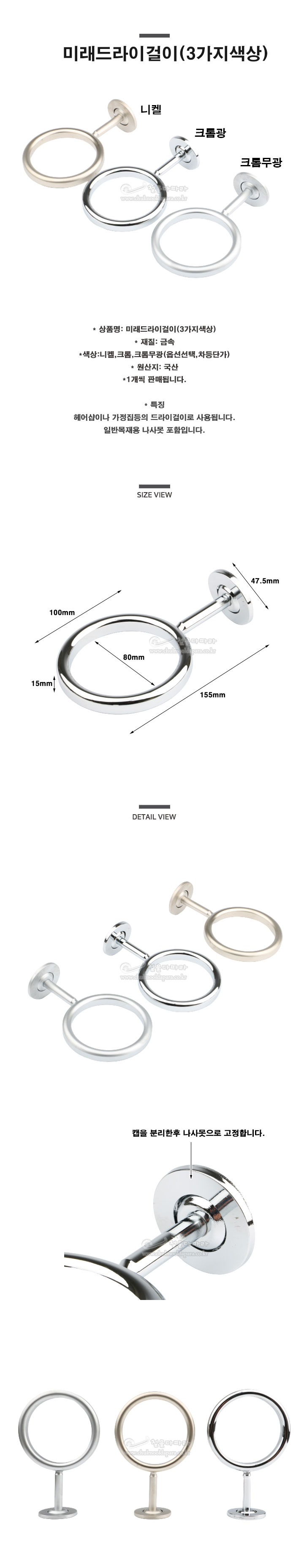 > 미래드라이걸이(3가지색상)(드라이거치대/가구철물/다용도걸이/DIY부속/가구부속/드라이기걸이/헤어샵철물/미용실철물)