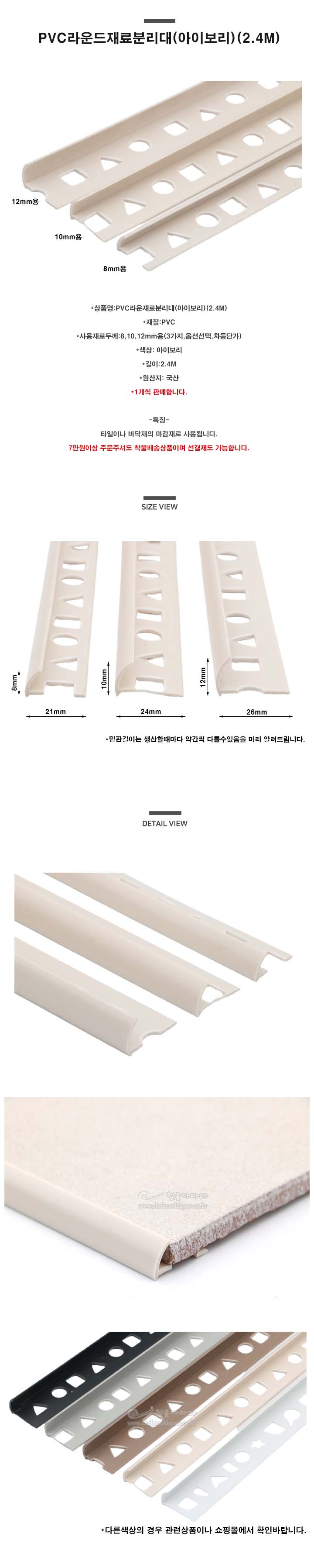 > PVC라운드재료분리대(아이보리)(2.4M)(PVC타일몰딩/타일꼼꼼이/PVC코너몰딩/아이보리타일몰딩/코너비드/타일마감재/PVC몰딩/아이보리코너몰딩/라운드몰딩)