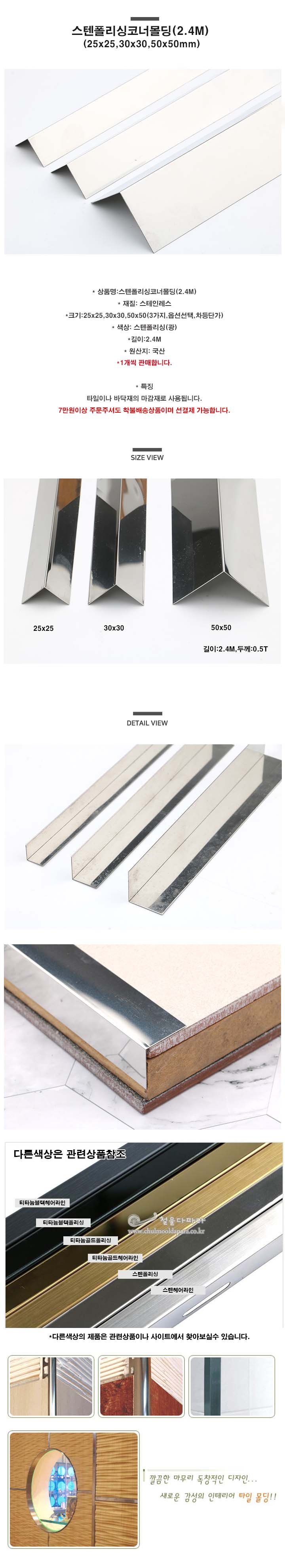 스텐코너몰딩(폴리싱)(25x25,30x30,50x50)(코너몰딩/코너비드/꼼꼼이/스텐몰딩/스텐코너비드/ㄱ자코너몰딩/ㄱ자재료분리대/타일몰딩))